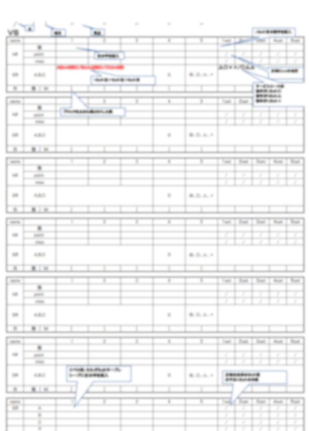 → 選手ごとの得点・失点を1セットごとに記録できる - 個人記録用紙